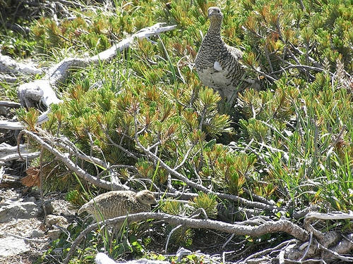 ライチョウの親子。白馬岳山頂付近にて。